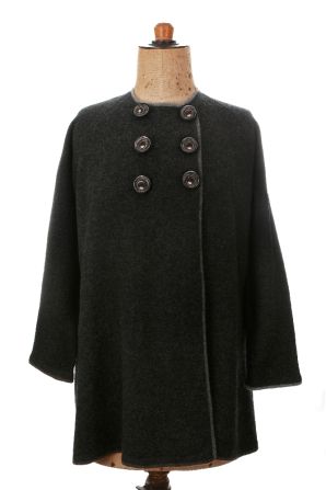 We love this slightly A-line raglan jacket, it is so flattering. Our hand felted buttons being a striking feature.